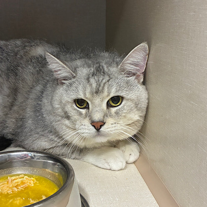 This adorable guy is named Ollie, Ollie is approximately 5-7 years old, he is very shy and timid in the shelter and would love to find a forever home. His former owner unfortunately passed away, he may be good with other cats (especially more calm senior cats).