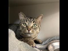 This sweetheart is Autumn, she is 10 years old, she id a really sweet cat, she is good with older kids but maybe not younger ones (she does not like being picked up, because she has arthritis), she isn't great with other cats or dogs! She will need arthritis pain meds for the rest of her life, which would cost about $25/ a month