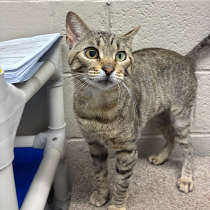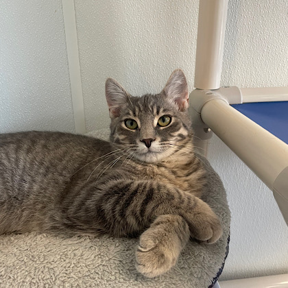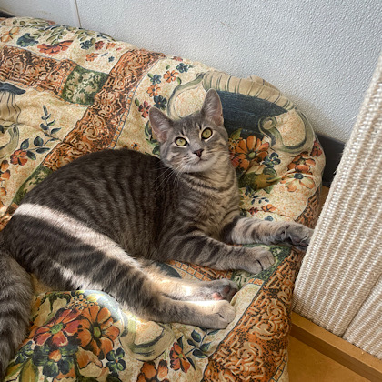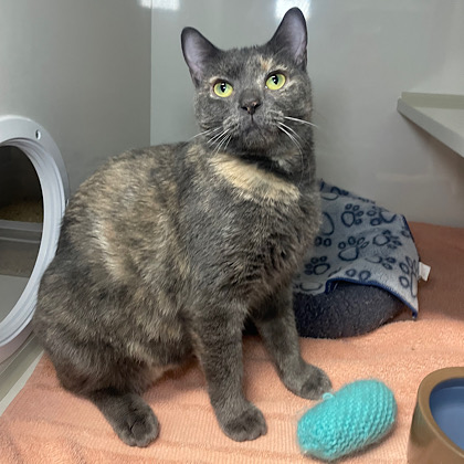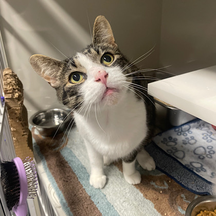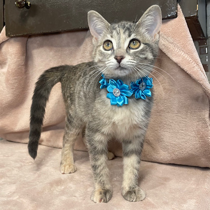 This very sweet lady is Chai, she is 4.5 months old she is good with other cats, and people. She would love to meet you! ❤