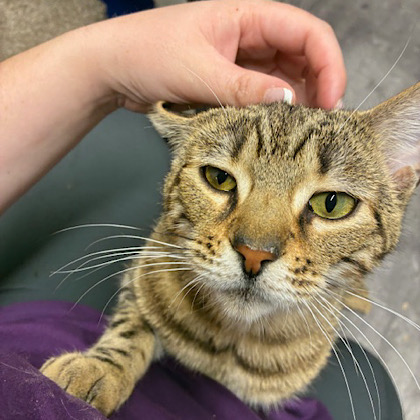 This adorable guy is named Artemis, he is a 1 year old Bengal x, he is a very sweet cat he loves attention, and is also great with other cats.