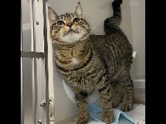 This adorable cat is Crados, he is 1 years old, he is very sweet, loves pets, and gets along great with other cats!